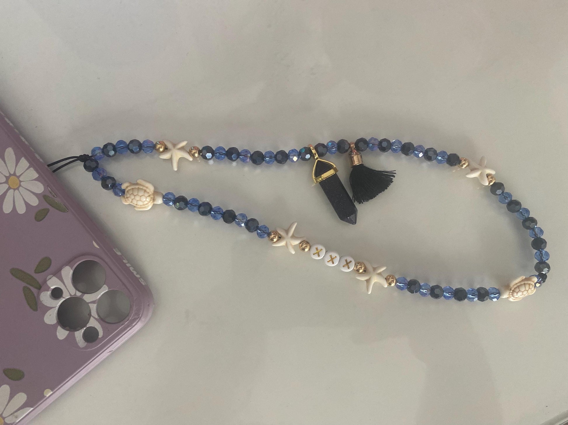 Personalise Name Phone Charm Blue, Gold, Starfish, Turtle, Blue Sparkle Glitter Charm, Black Tassel, Personalised Gift