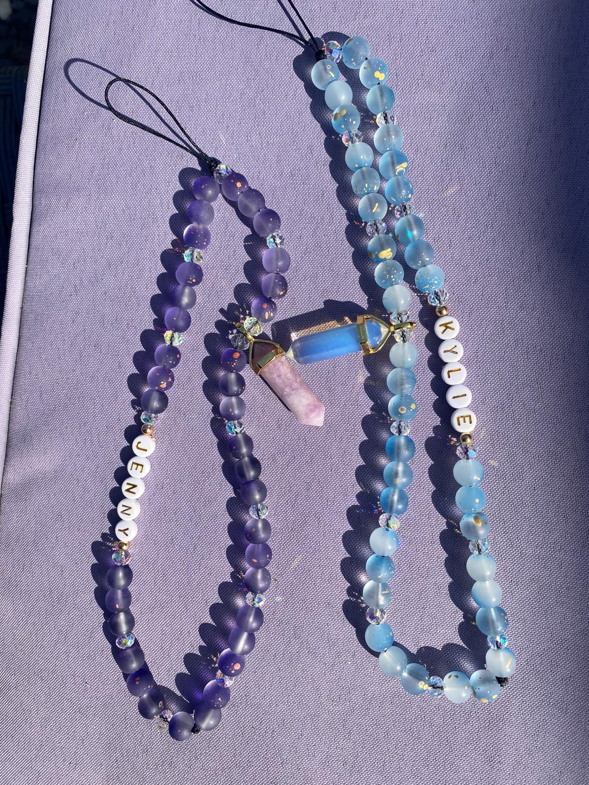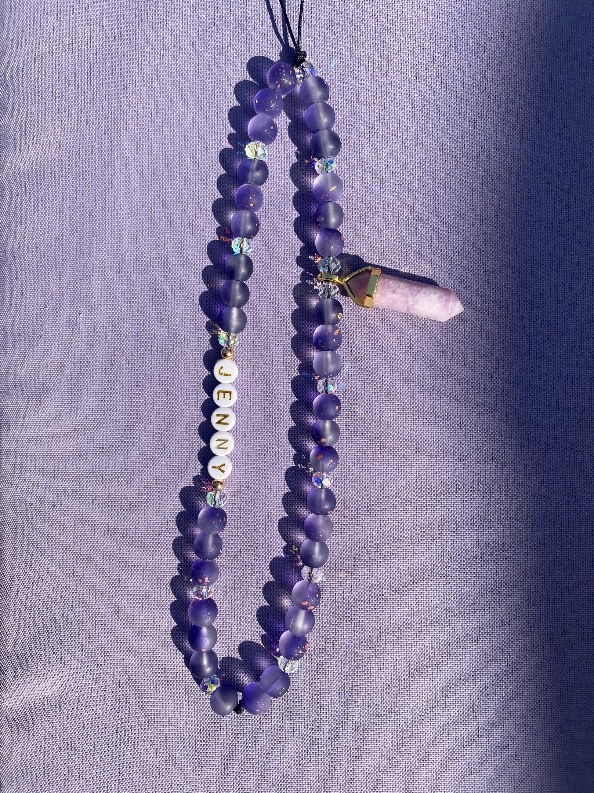 Personalise Name Phone Charm With Crystal Pendant Blue Opalite Purple Lepidolite Spiritual Custom Accessory Phone Strap Personalised Gift